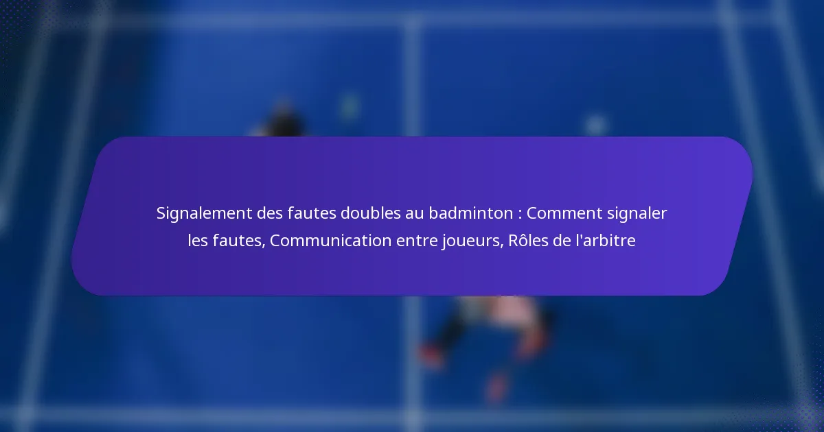 Le signalement des fautes dans le badminton en double implique des dynamiques uniques par rapport au simple, principalement en raison de la présence de deux joueurs dans chaque équipe. Les définitions des fautes, les procédures de signalement et les stratégies de communication d’équipe diffèrent, impactant la manière dont les joueurs et les arbitres gèrent le jeu.