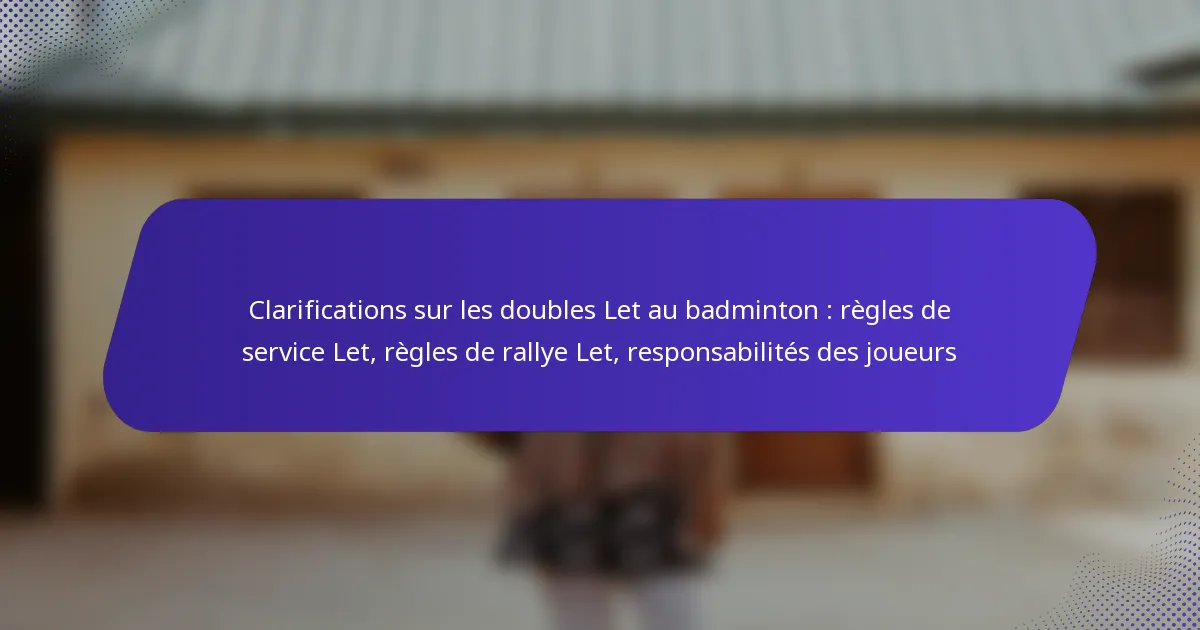 Dans le badminton en double, comprendre les règles de service let et de rallye let est crucial pour maintenir l’équité pendant le jeu. Un service let se produit lorsque le service est interrompu, nécessitant une reprise, tandis que les règles de rallye let dictent quand un rallye doit être rejoué en raison d’interruptions. Les joueurs doivent également être conscients de leurs responsabilités dans ces situations, soulignant l’importance de la communication et d’une action rapide pour garantir un jeu fluide.
