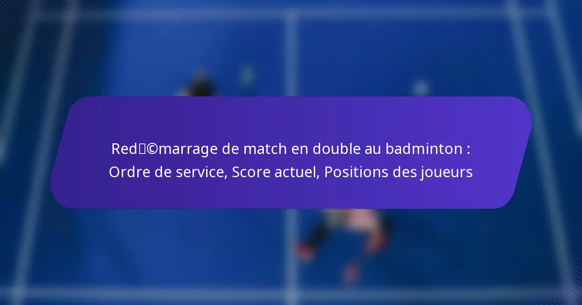 Redémarrer un match de badminton en double implique des règles spécifiques concernant l’ordre de service, le score actuel et les positions des joueurs. Comprendre ces éléments garantit une transition fluide vers le jeu et maintient l’intégrité du match.