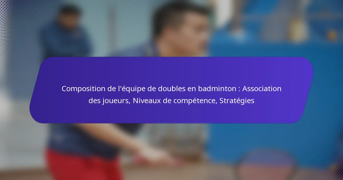 Dans le badminton en double, la composition de l’équipe est cruciale pour le succès, reposant sur des facteurs tels que l’appariement des joueurs, les niveaux de compétence et l’exécution stratégique. Des compétences complémentaires et une forte chimie d’équipe peuvent considérablement améliorer les performances, tandis que des niveaux de compétence bien assortis favorisent une meilleure communication et synergie. En se concentrant sur des stratégies efficaces et en comprenant les forces et faiblesses de chaque joueur, les équipes peuvent optimiser leur jeu et surpasser leurs adversaires.